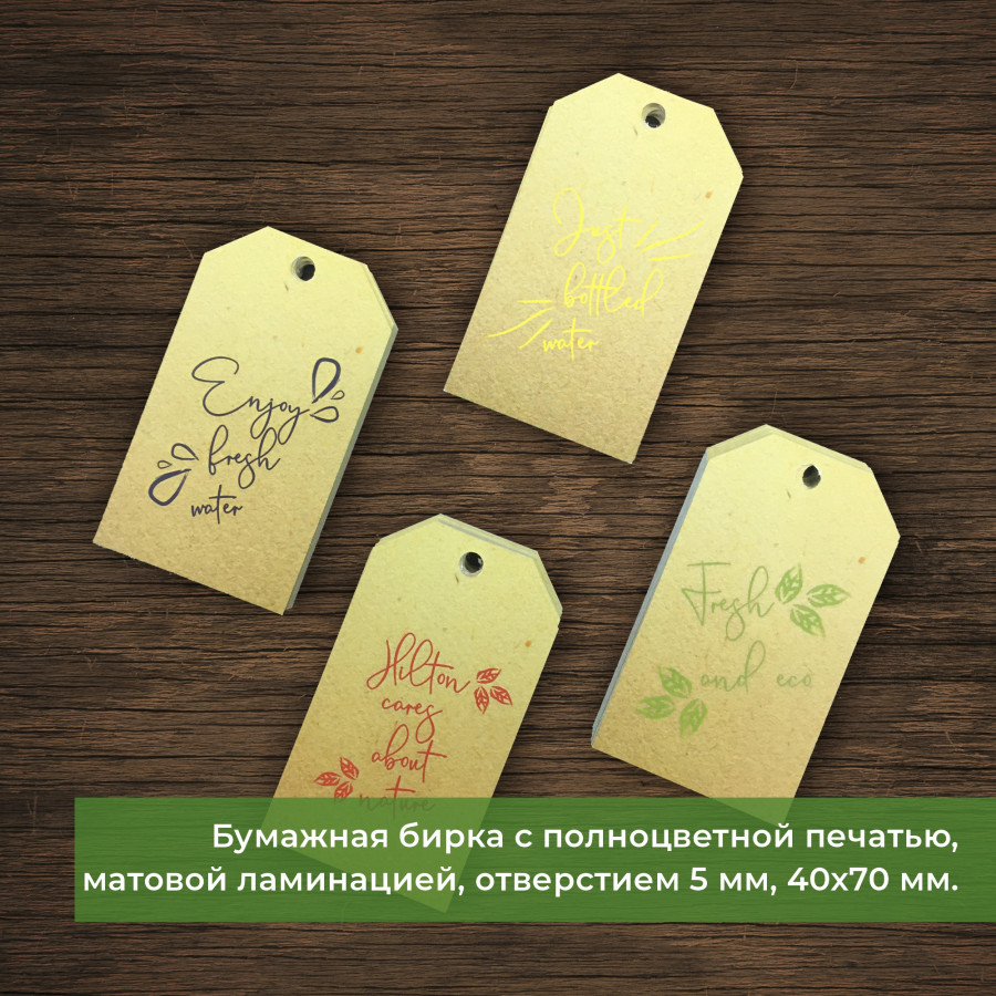 • Бумажные бирки и ценники — классический вариант из картона или дизайнерской бумаги, можно ламинировать для защиты.