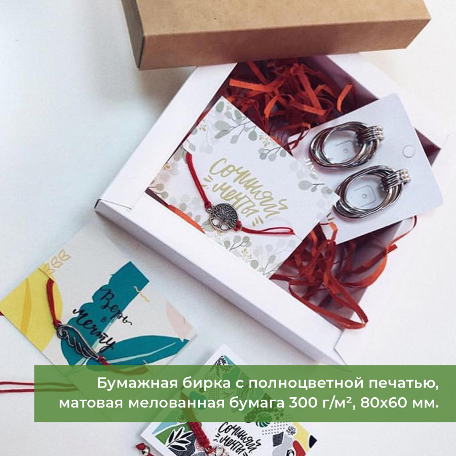 Бумажные бирки и ценники — классический вариант из картона или дизайнерской бумаги, можно ламинировать для защиты.